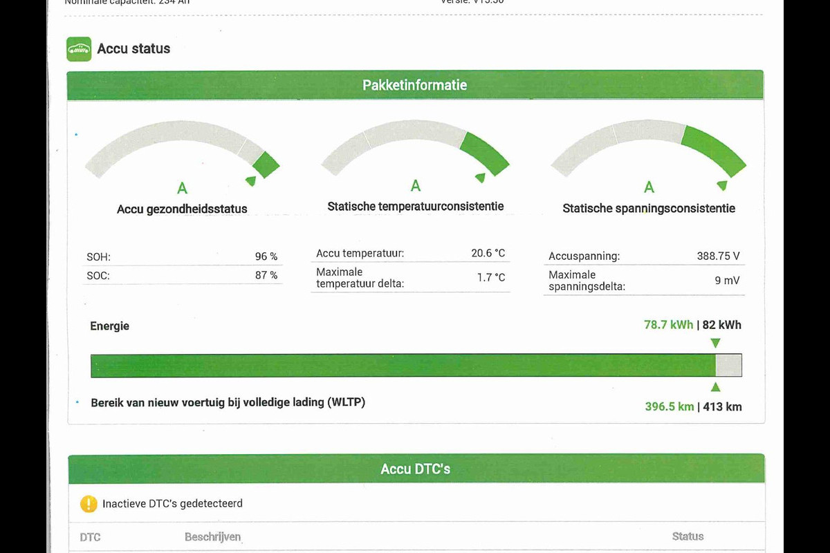 Accu: 77 kWh, Conditie: 96%