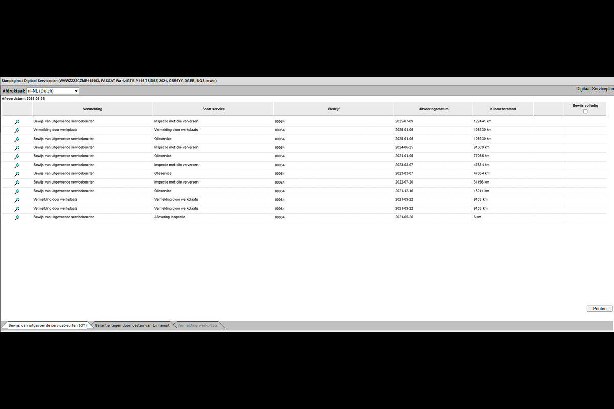- Onderhoudshistorie