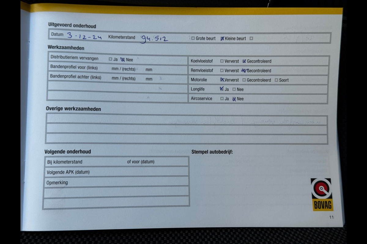 Onderhoudsboekjes: Aanwezig (dealer onderhouden)