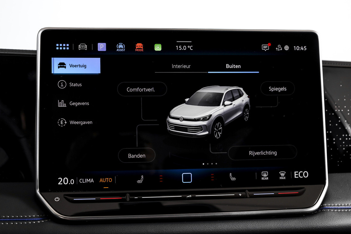 De auto is rijk uitgerust, maar wel op een manier die je in het dagelijks gebruik echt merkt. Zo beschikt deze Tiguan over een achteruitrijcamera, aangevuld met parkeersensoren voor en achter, waardoor manoeuvreren eenvoudig en overzichtelijk blijft. Ook tijdens langere ritten biedt de auto veel comfort. De Tiguan is uitgerust met adaptive cruise control, een volledig digitaal instrumentenpaneel en electronic climate control, waardoor je in alle omstandigheden ontspannen onderweg bent.
