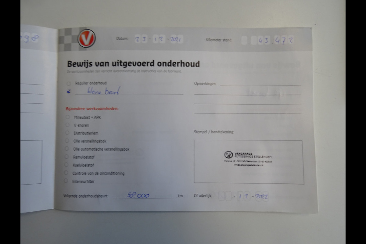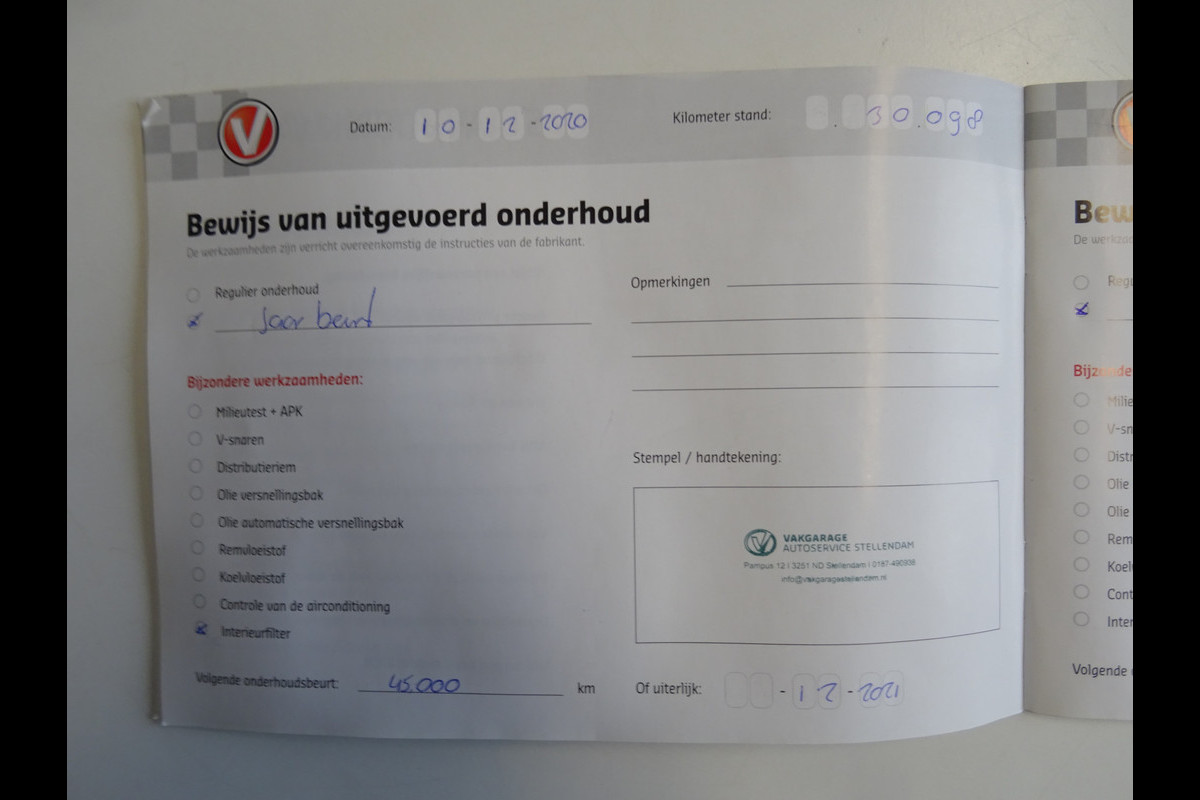 Onderhoudsboekjes: Aanwezig