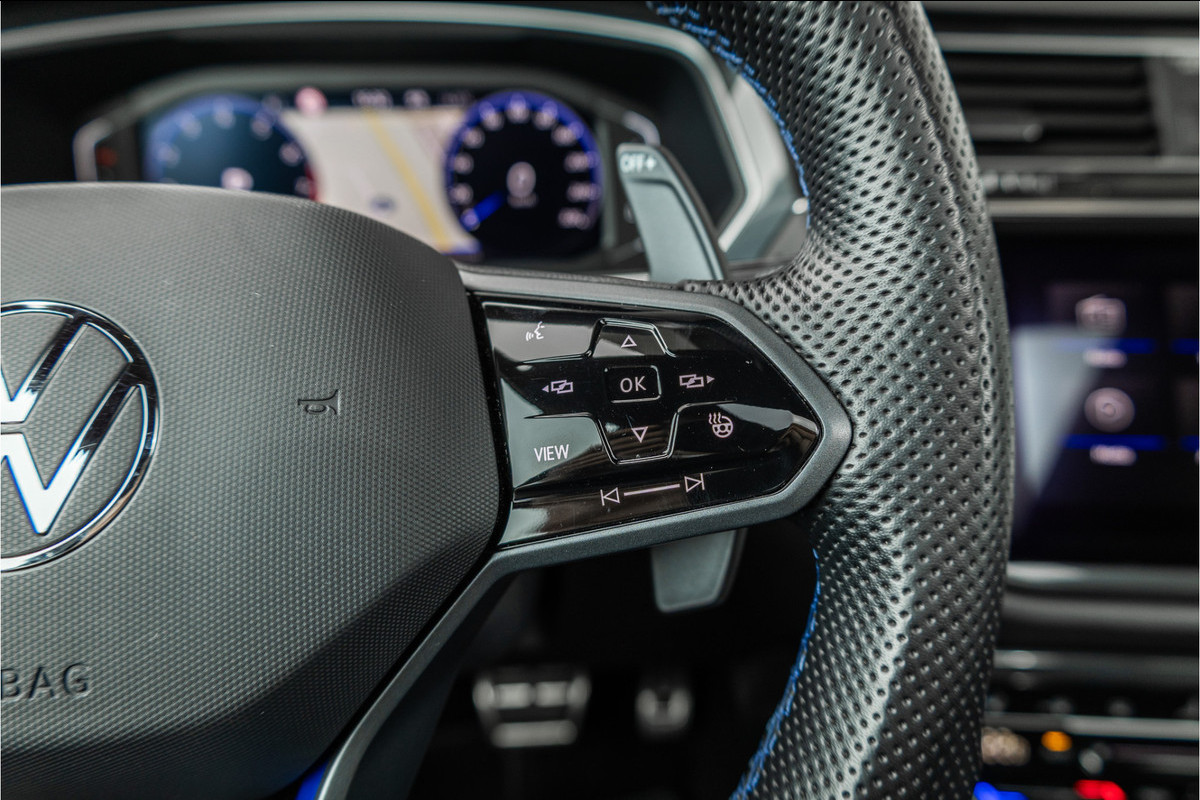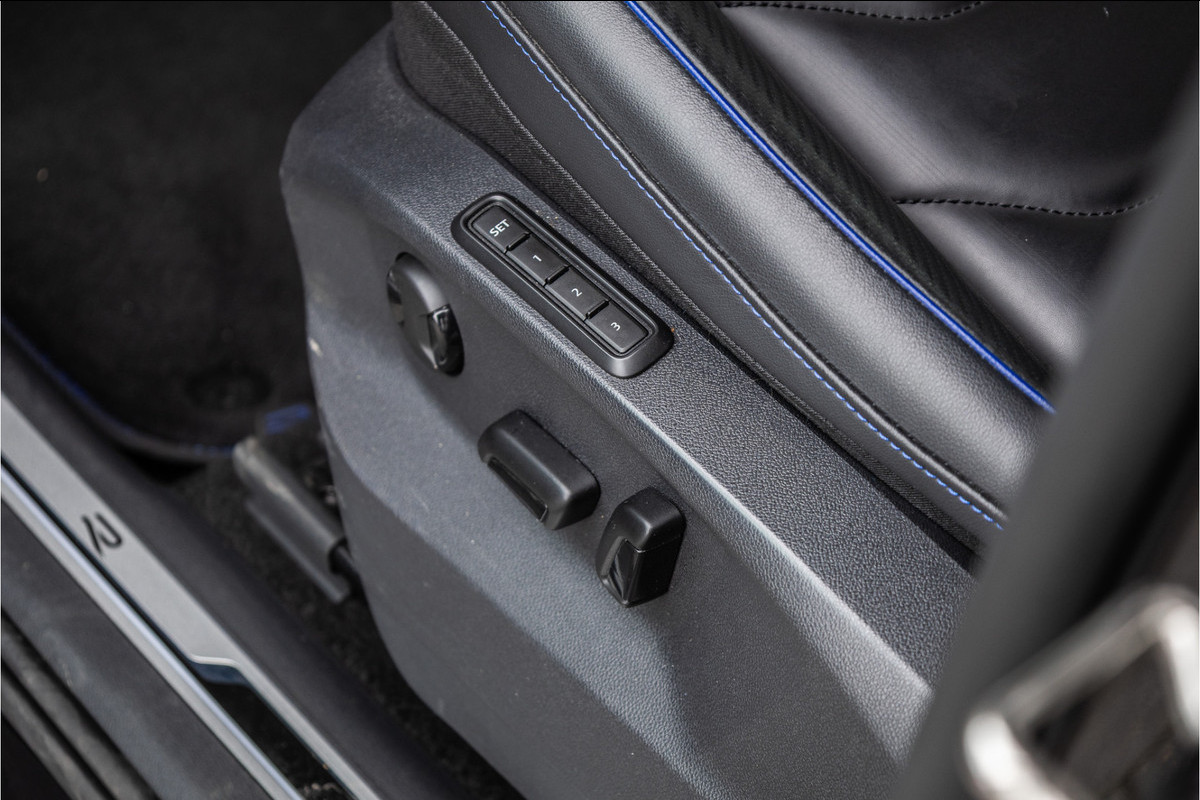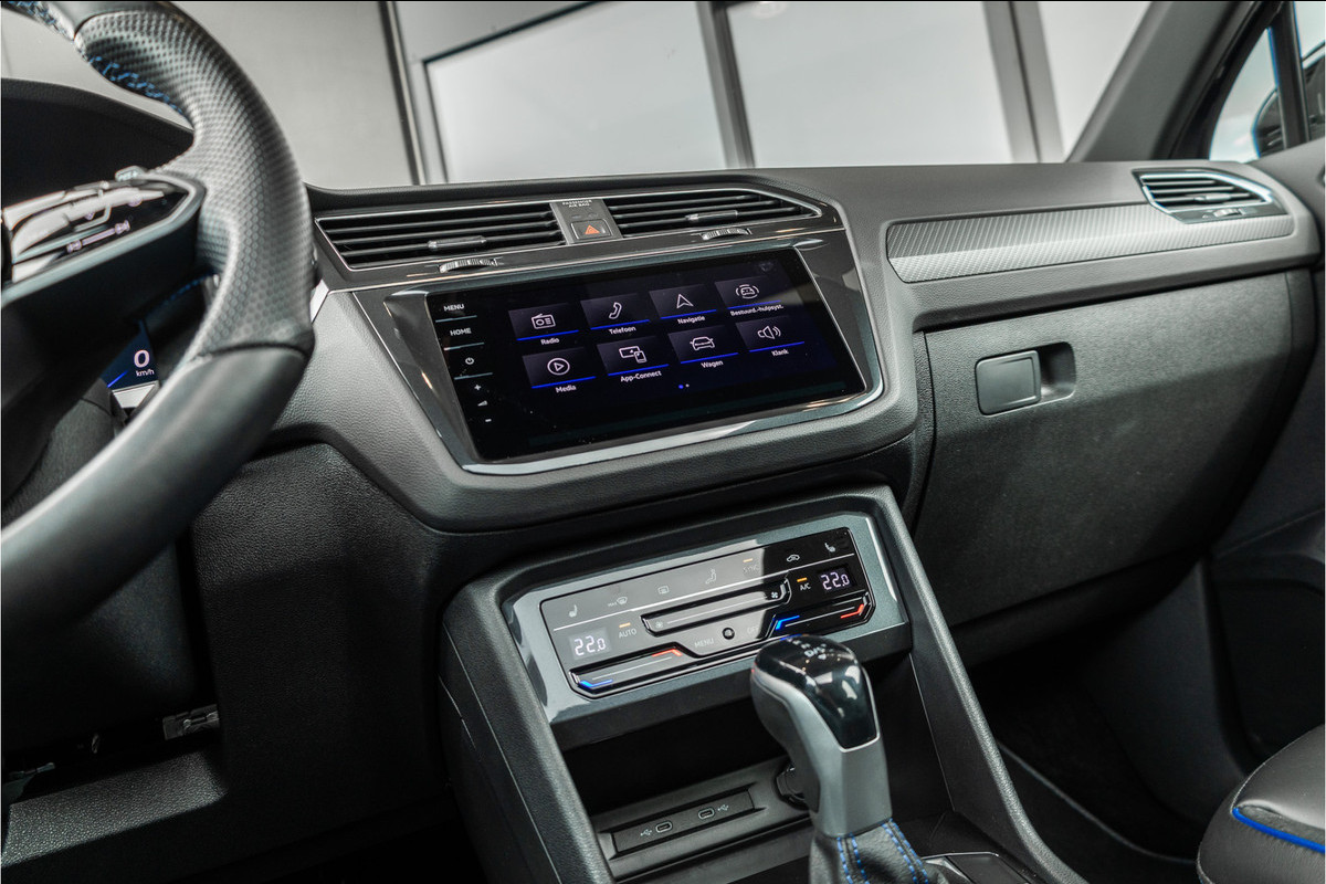 De R uitrusting geeft de Tiguan een sportieve identiteit die subtiel genoeg is voor doordeweeks maar uitgesproken genoeg om nooit door te gaan voor gewoon. De R-specifieke bumpers, de 20-inch Estoril wielen, de blauwe remklauwen en het interieur met R sportstoelen, blauw ambient verlicht stuurwiel en de R badge op elke relevante plek — dit is de Tiguan voor de rijder die zijn SUV niet wil opgeven maar zijn rijplezier ook niet. Een compromis dat geen compromis voelt.