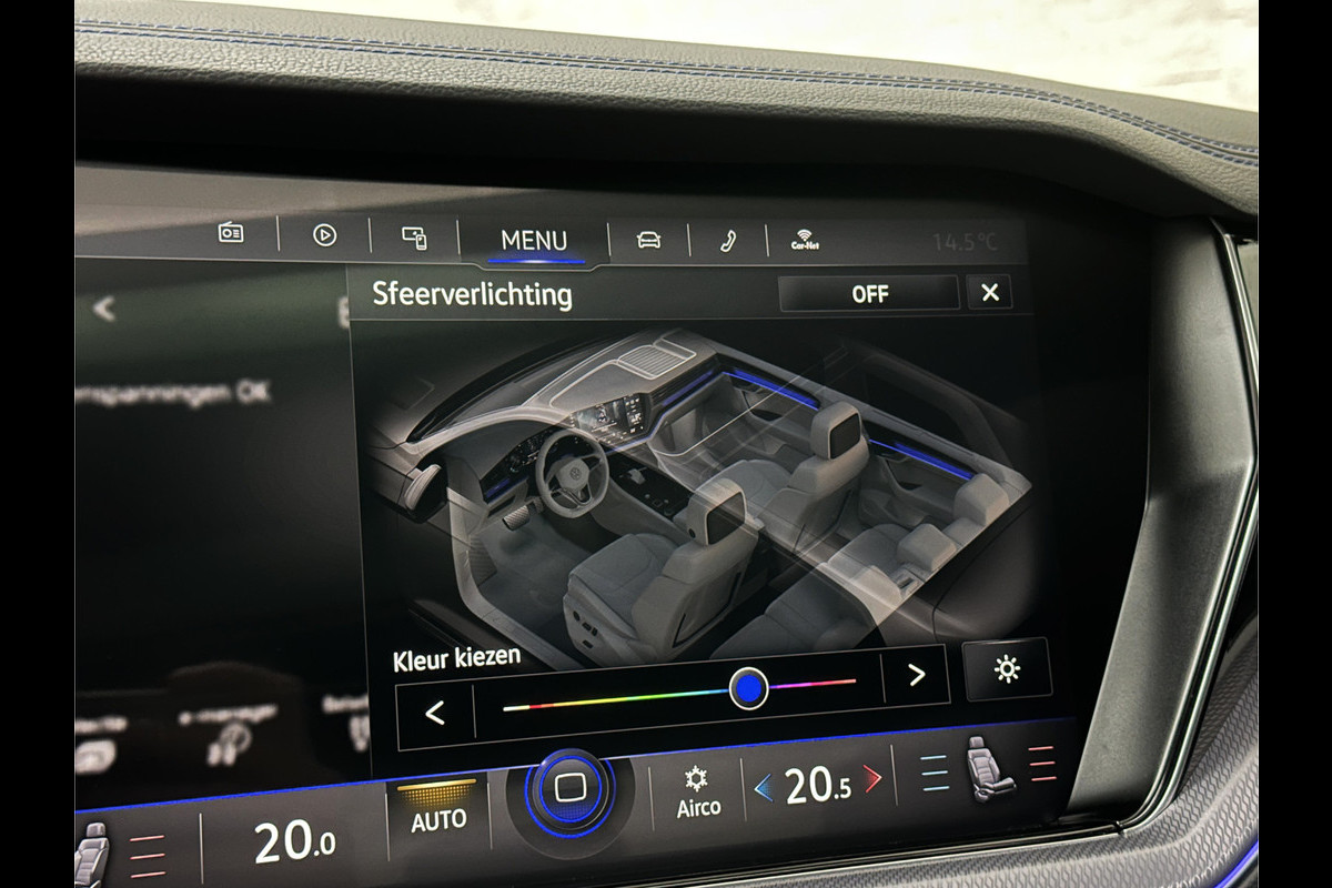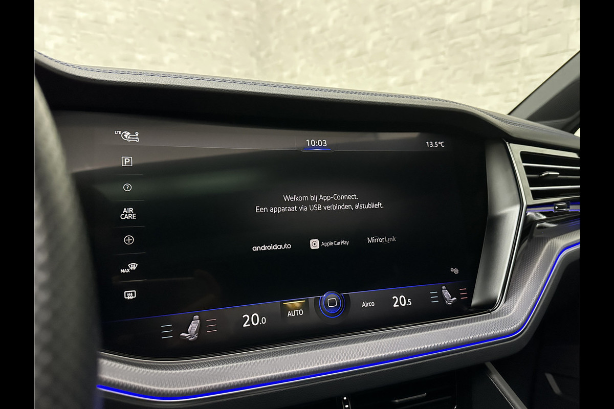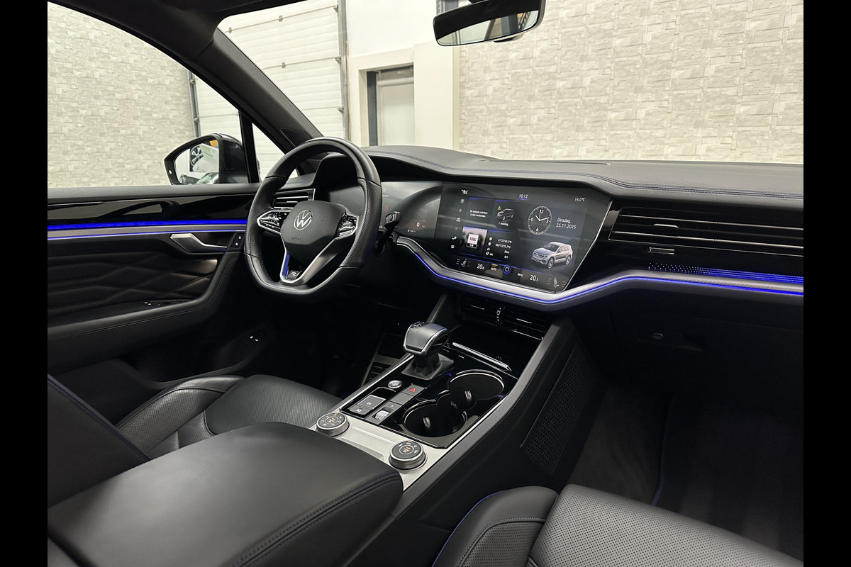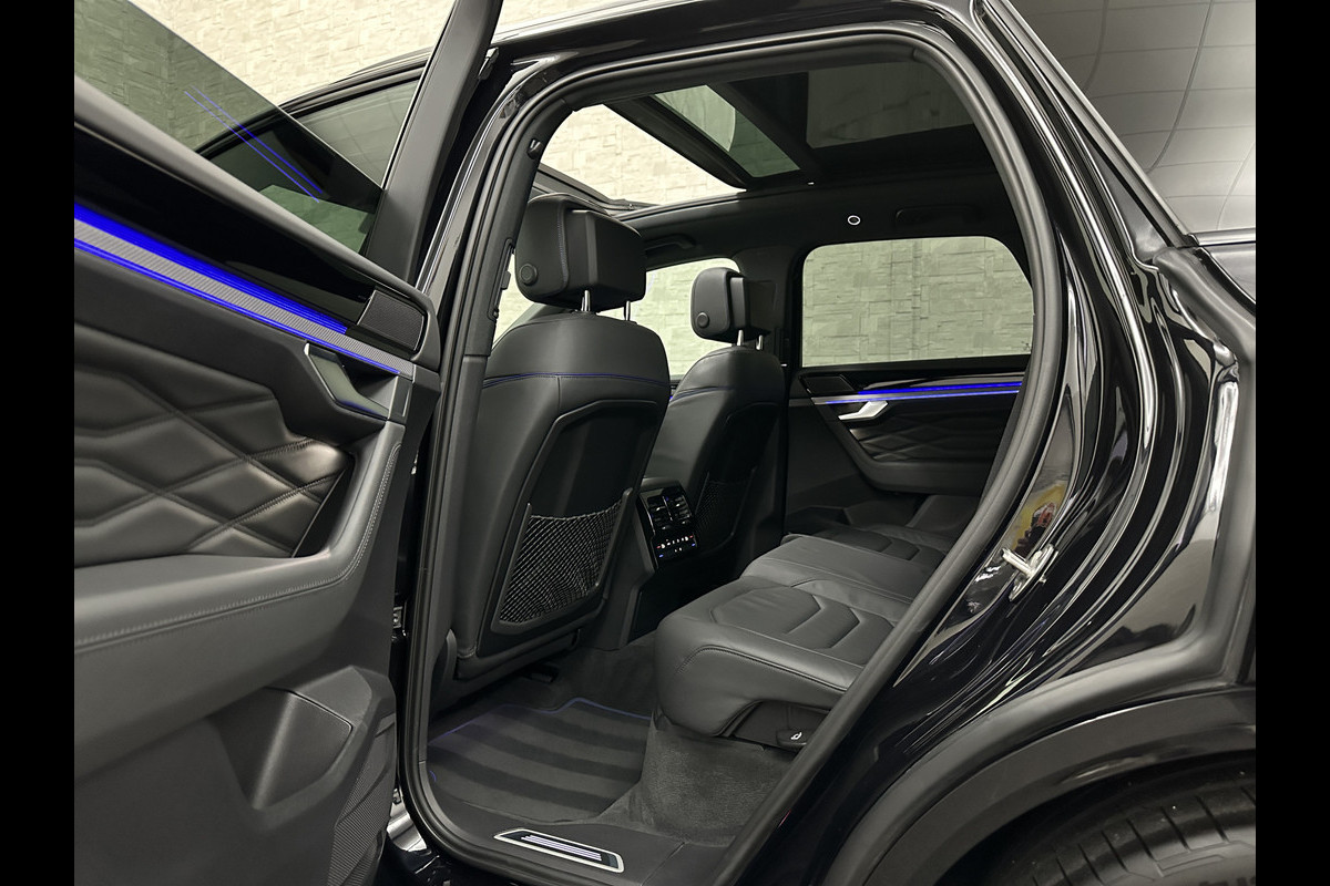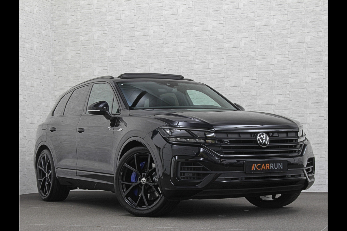 Volkswagen Touareg R 3.0 TSI 462PK E-Hybrid | Luchtvering | Puglia Leder | Panorama | ACC | Trekhaak | 22'' | Stoelventilatie | Nachtzicht | Head-Up | Standkachel | Ergo-Comfort | Sfeerverlichting | 4-Zone Clima | Stuurverwarming | Black-Optic | Dodehoek | Lane-Assist | Carplay | Draadloos Laden | BOVAG Garantie |