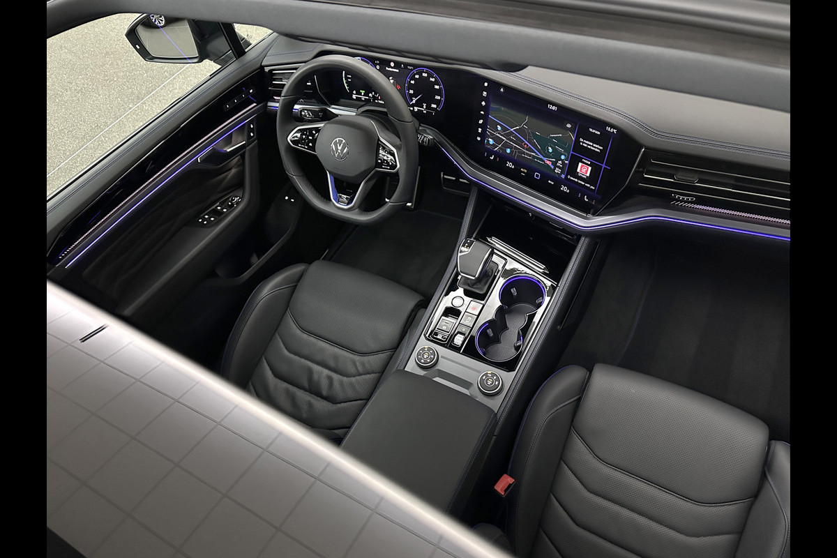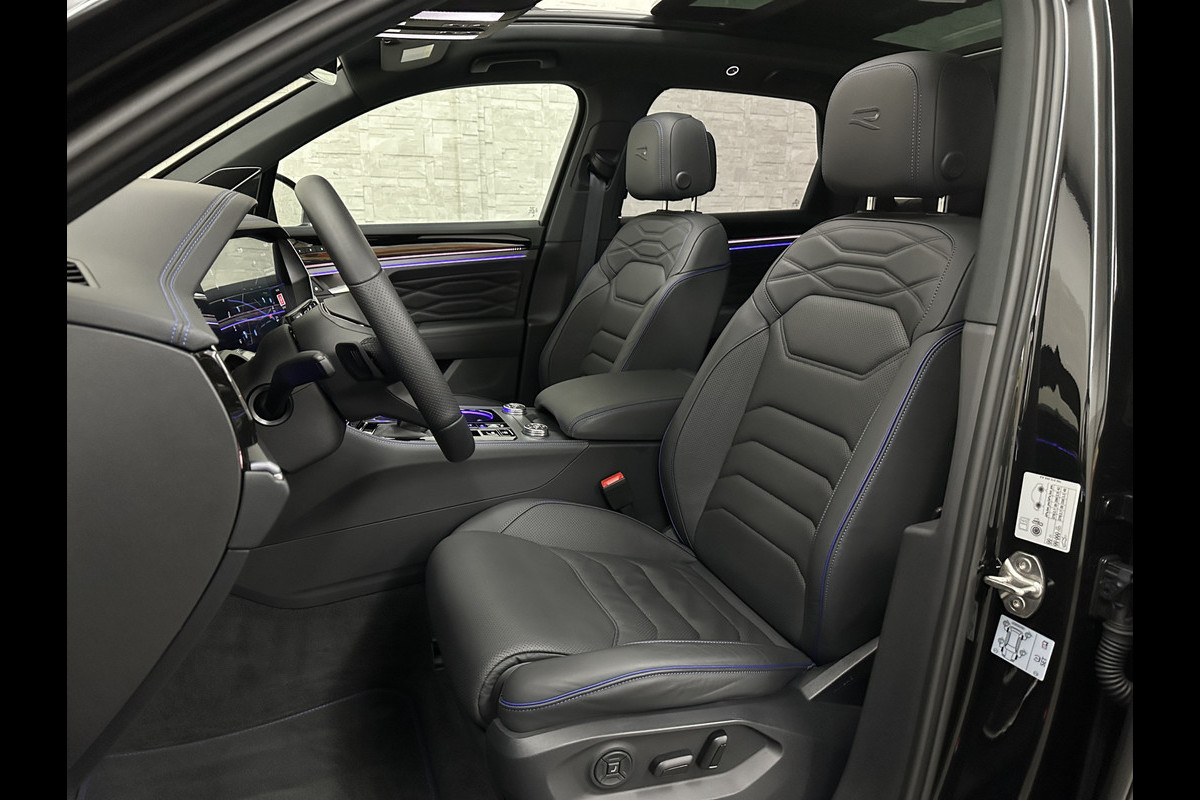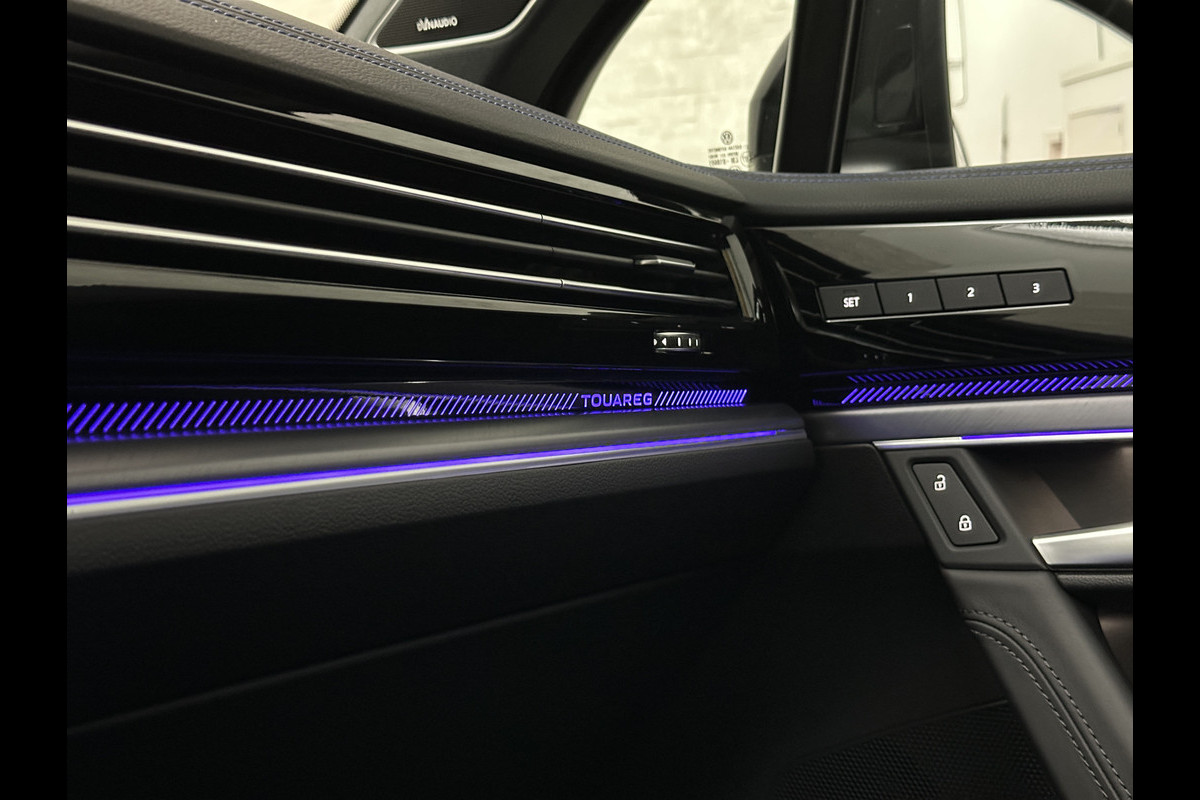 Volkswagen Touareg R 3.0 TSI 462PK E-Hybrid | Luchtvering | Puglia-Leder | Panorama | DYN-Audio | Massage | Ventilatie | ACC | Trekhaak | Nachtzicht | Head-Up | Ergo-Comfort | 22" | Keyless-Entry | Memory | 4-Zone Clima | ISO-Glas | Stoelverwarming V+A | Dodehoek | Standkachel | Carplay | Draadloos Laden |