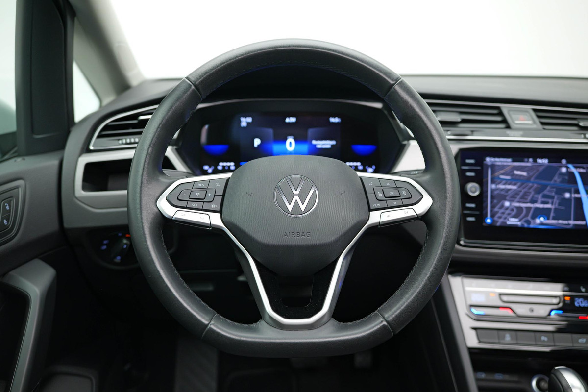 Soepel inparkeren gaat gemakkelijker dan u verwacht dankzij de achteruitrijcamera. Als u de adaptive cruise control inschakelt, regelt de auto zelf de snelheid en de afstand tot de auto voor u. Veilig en comfortabel rijden wordt nog eens versterkt door Connected Services, zodat u diverse vitale functies van de auto altijd kunt checken in de app. In deze Touran vindt u niet alleen schakelaars op het stuur om het navigatiesysteem met harde schijf te bedienen en het audio-installatiesysteem met DAB-ontvangst, maar er is ook spraakbediening. Aan boord bevindt zich een draadloze telefoonlader. Geen kabels of snoertjes - opladen maar! Deze Volkswagen is voorzien van achteropkomend verkeer waarschuwing, automatische airconditioning, regensensor, keyless entry, lederen stuur en bagage afdekhoes.