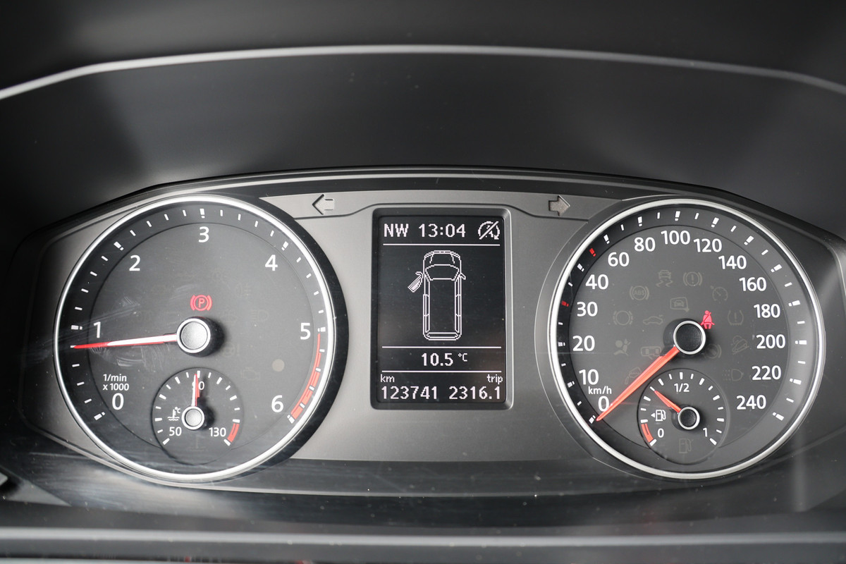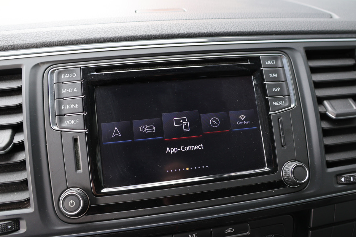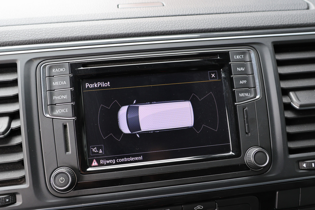 Adaptive cruise control is een comfortabele en veilige optie. Het systeem reguleert de snelheid en houdt automatisch afstand tot uw voorligger. In deze auto wordt u elke rit opnieuw bijgestaan door een gebruiksvriendelijk full map navigatiesysteem, terwijl u luistert naar het glasheldere geluid van het audiosysteem met DAB-radio. Een plekje vinden in de binnenstad is één, inparkeren is twee. Voor dat laatste heeft deze Volkswagen Transporter prima parkeersensoren die u een handje helpen. Natuurlijk is een complete auto als deze ook voorzien van sensoren die de omgeving in de gaten houden. Deze Volkswagen heeft niet alleen een automatisch inschakelbare verlichting aan boord, maar ook een regensensor. In de zomer zorgt de airconditioning voor verkoeling. In het voorjaar en najaar voorkomt het systeem beslagen ramen. Extra opties op deze auto zijn: automatisch dimmende binnenspiegel, centrale deurvergrendeling met afstandsbediening, boordcomputer en verstelbaar stuur.