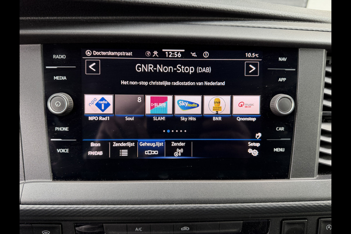 Deze Volkswagen Transporter is voorzien van remote services. Via uw smartphone bedient u diverse functies ook op afstand en krijgt u informatie over de status van uw auto. Nooit meer de weg kwijt: daarvoor zorgt het onboard navigatiesysteem. Met de automatische airconditioning selecteert u de gewenste temperatuur. Het systeem doet de rest. Voor het ware fingerspitzengefühl zorgt de audiobediening op het stuur. Voor een storingvrije radio-ontvangst zorgt de ingebouwde DAB-ontvanger. Deze Volkswagen is voorzien van parkeersensoren voor en achter, regensensor, cruise control, lederen stuur, centrale deurvergrendeling met afstandsbediening en boordcomputer.