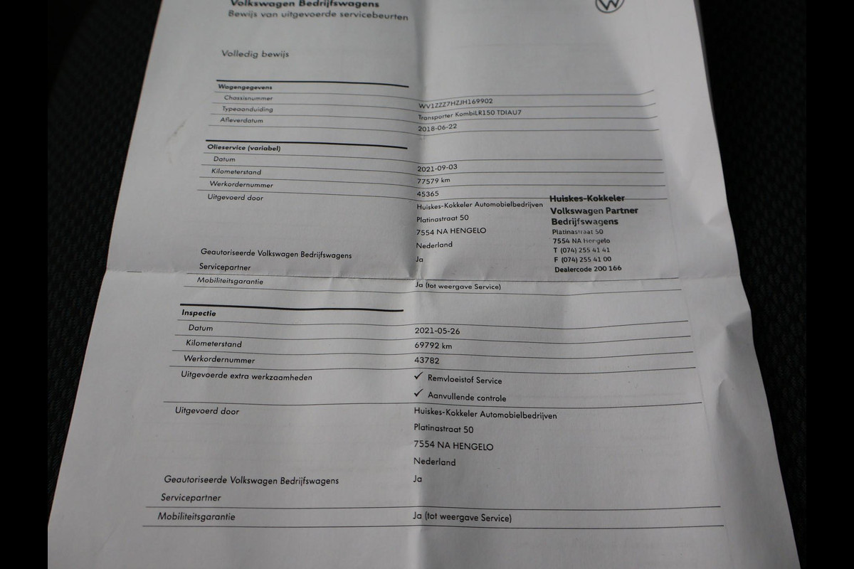 Verlengde L2H1 Transporter 2.0 TDI 204 PK DSG Automaat Highline Dubbel cabine met 5 zitplaatsen, Origineel Nederlandse en 1e eigenaar auto, Volledig Volkswagen dealer onderhouden, Deep Black Pearl effect, Comfortstoelen met armleuningen links en rechts, Full LED koplampen, LED achterlichten, Adaptive cruise control, 2 schuifdeuren, Apple Carplay / Android Auto appstreaming Google Maps, Flitsmeister, Spotify etc, Trekhaak met 2500 kg trekgewicht op kenteken, Elektronisch verwarmde voorruit, Achterklep met ruit, Parkeersensoren, 18 inch lichtmetalen velgen, Leder stuurwiel multifunctioneel, Navigatie touch-screen, Airco, Bumpers en buitenspiegels in carrosseriekleur, Bluetooth met audiostreaming, DAB Digitale radio, Houten laadvloer, Wandafwerking laadruimte, Prijs is exclusief BTW.