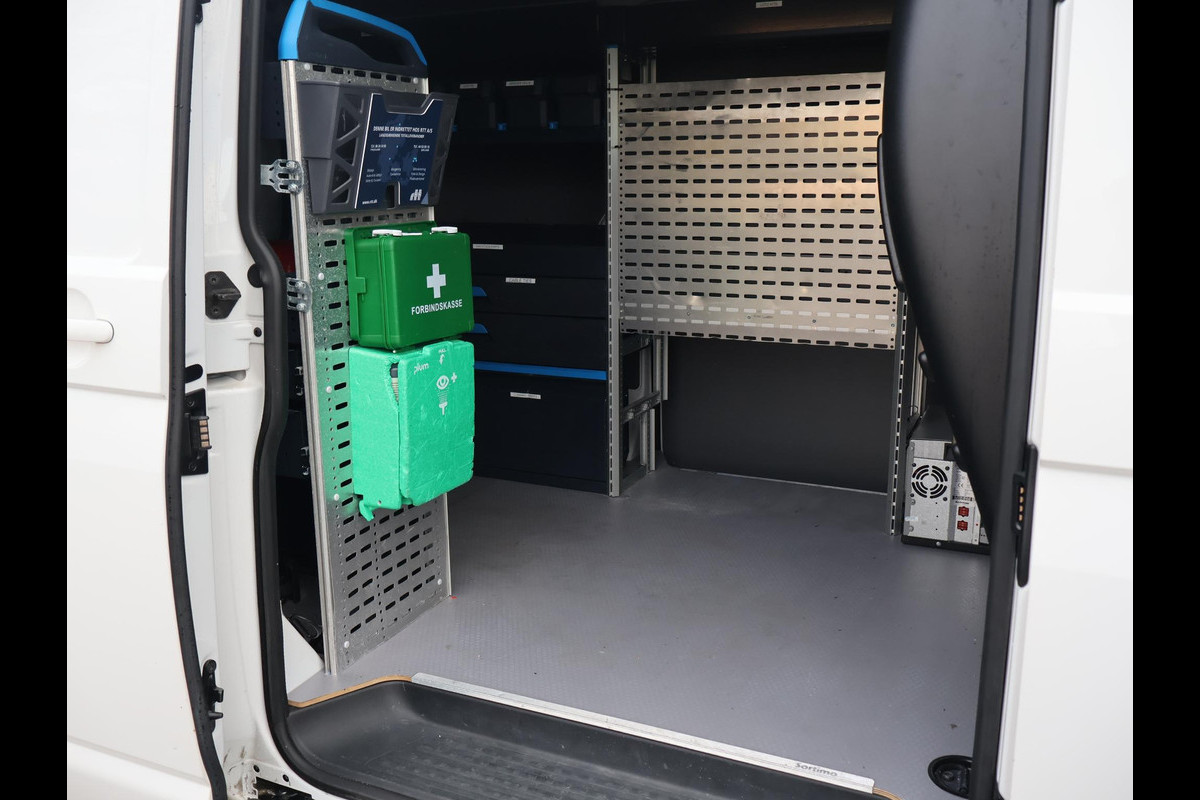Volkswagen Transporter 2.0 TDI 150 PK DSG 4Motion 4WD Automaat, L1H1 uitvoering, Complete werkplaatsinrichting in de laadruimte met extra accu, Standkachel, Adaptieve cruise control met regelbare afstand op de voorganger, Draadloze apple carplay/Android auto met verschillende apps waaronder: Spotify, Whatsapp en Flitsmeister, Stoelverwarming met meerdere standen, Trekhaak met 2500 KG trekgewicht, Achteruitrijcamera, Bluetooth telefoonverbinding met audiostreaming, DAB Digitale radio, Navigatiesysteem met kaartweergave, Comfortstoelen met elektrisch verstelbare lende steunen met armleuningen links en rechts, Armsteunen, Elektrisch inklapbare buitenspiegels, Multifunctioneel leder stuurwiel, USB-C aansluitingen, Elektrische ramen, LED koplampen, Prijs is exclusief BTW.