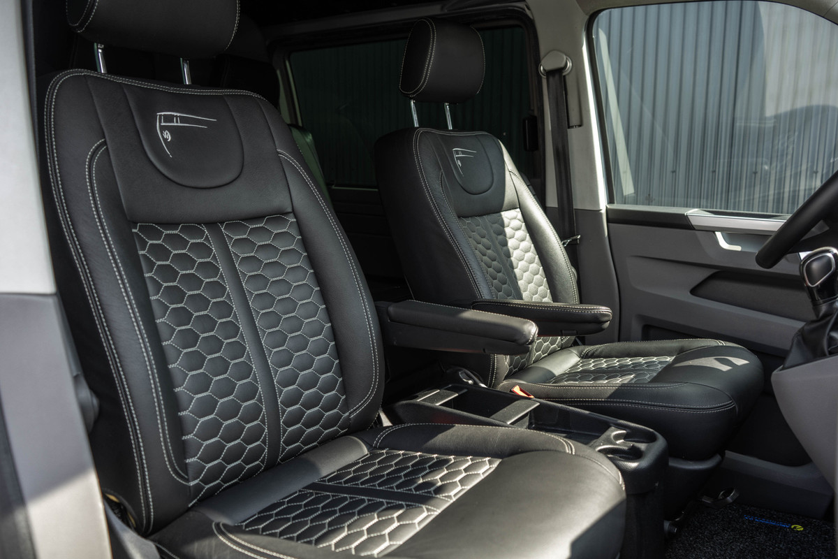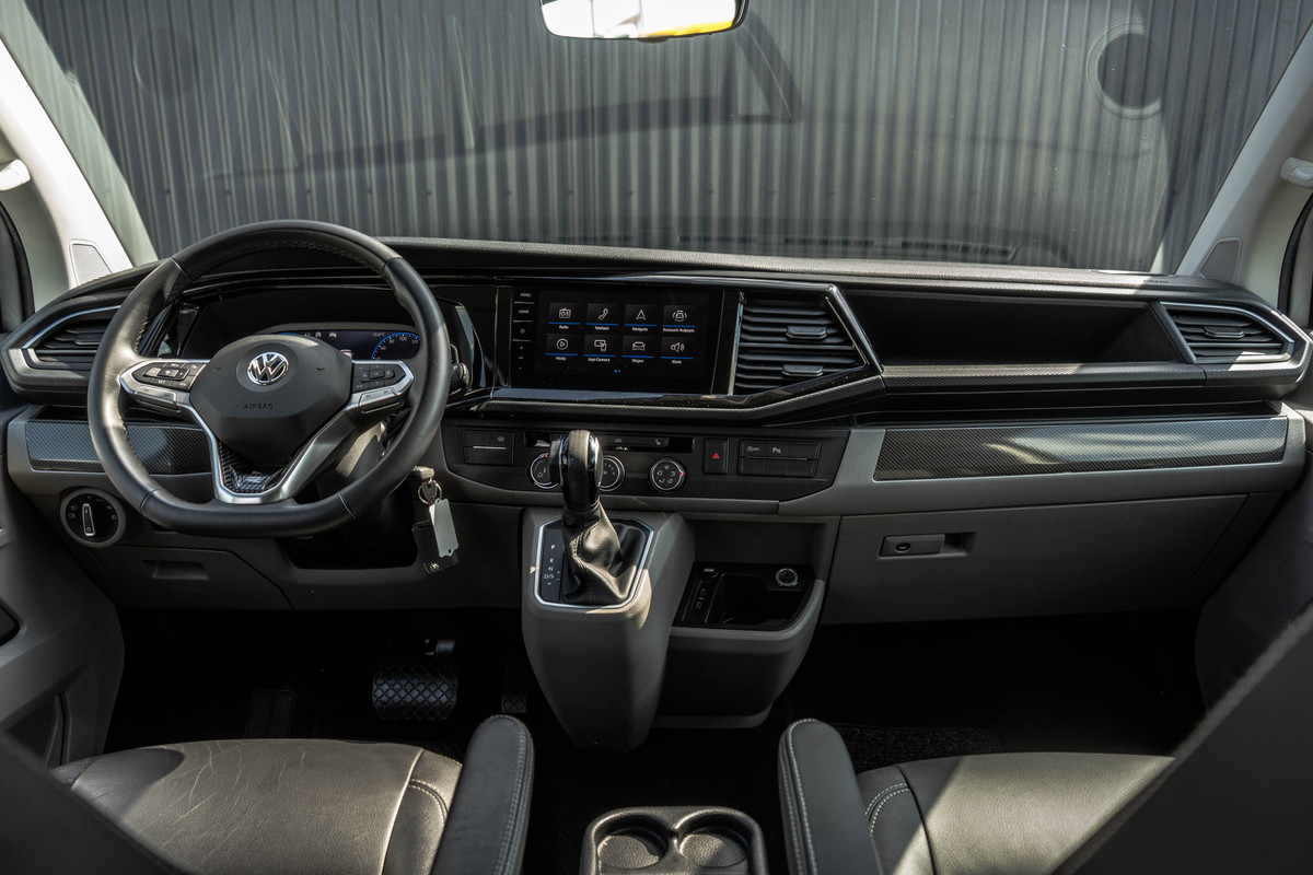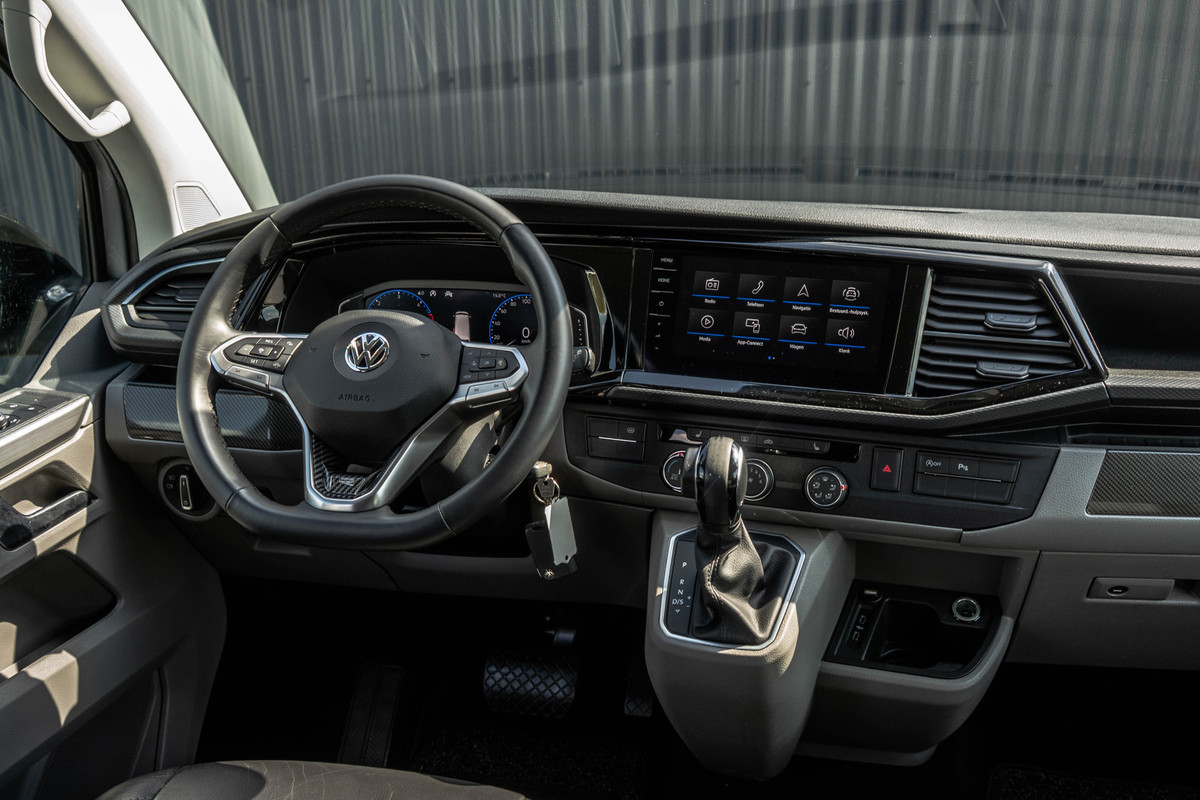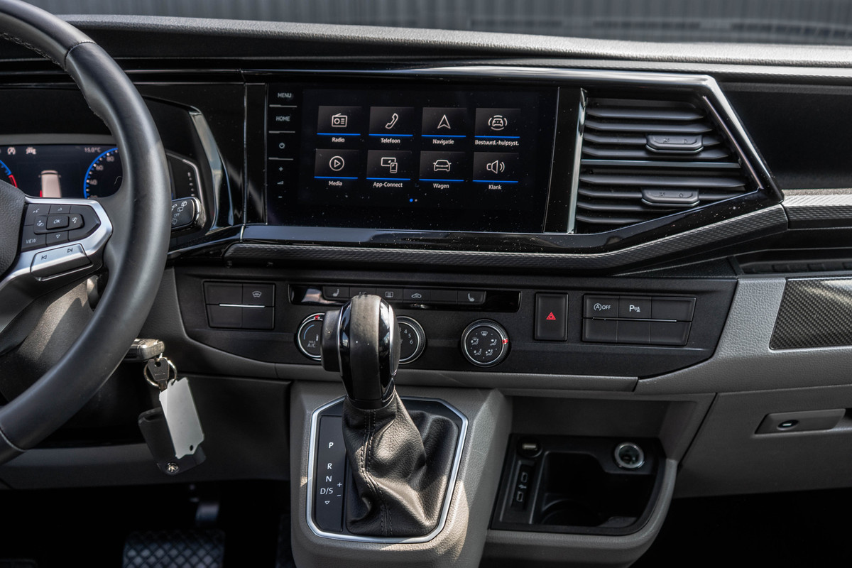 Deze stoer en luxe uitgevoerde Bulli is ondanks zijn standaard luxe uitvoering ook nog eens gestyled door de vorige eigenaar. Nu dus een echte eyecather. De combinatie van de 150 PK motor en de comfortabele automaat zorgt ervoor dat elke rit soepel en ontspannen verloopt, terwijl de LED-verlichting het moderne en krachtige karakter van de bus extra benadrukt. Binnenin valt direct de luxe lederen bekleding op met een fraaie stiknaad. Dit samen met het volledig digitale instrumentenpaneel zorgt voor een stoere en luxe uitstraling. Je stapt altijd comfortabel in, zeker op koudere dagen wanneer de stoelverwarming en vooruitverwarming hun werk doen. Onderweg blijf je moeiteloos verbonden dankzij Apple CarPlay en met de cruise control wordt ook een langere rit een ontspannen ervaring.