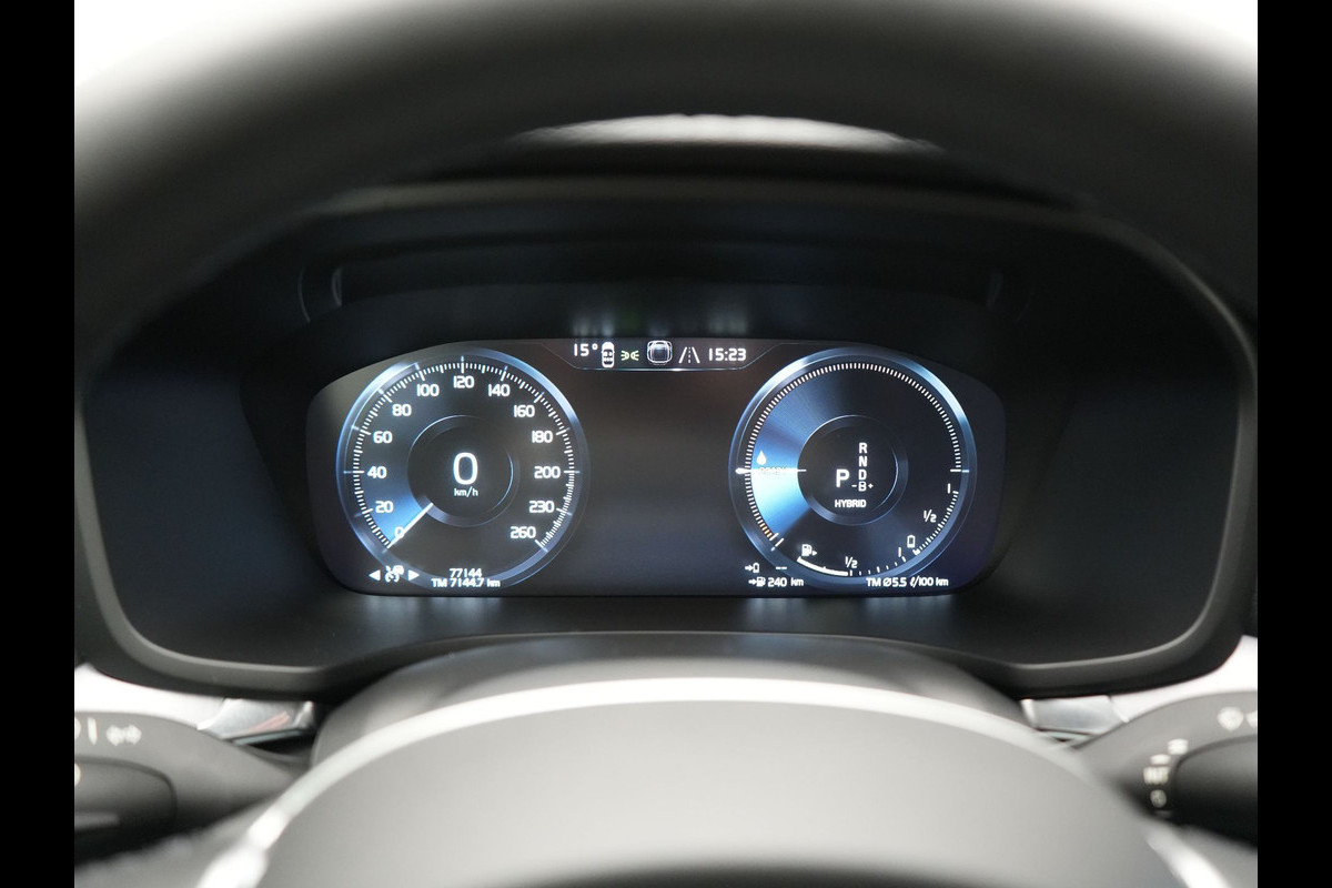 Alle functies voor een veilige en zuinige rit worden overzichtelijk weergegeven op het digitale dashboard. Adaptive cruise control houdt de ingestelde snelheid vast en houdt afstand tot het voertuig voor u. Locatie, motorconditie, storingen... via Connected Services krijgt u alle vitale info over de auto door. Ook handig bij pech! Het navigatiesysteem en het audio-installatiesysteem (met DAB-ontvangst!) bedient u met knoppen op het stuur of met gesproken commando's. Ook over uw schouder ziet u onderweg niet alles wat er aan de achterzijde gebeurt. Daarom heeft deze Volvo V60 een achteropkomend verkeer waarschuwing. Natuurlijk behoren WIFI-hotspot, electronic climate control, parkeersensoren achter, regensensor, keyless entry en automatisch dimmende buitenspiegels ook tot de uitrusting van deze complete auto.