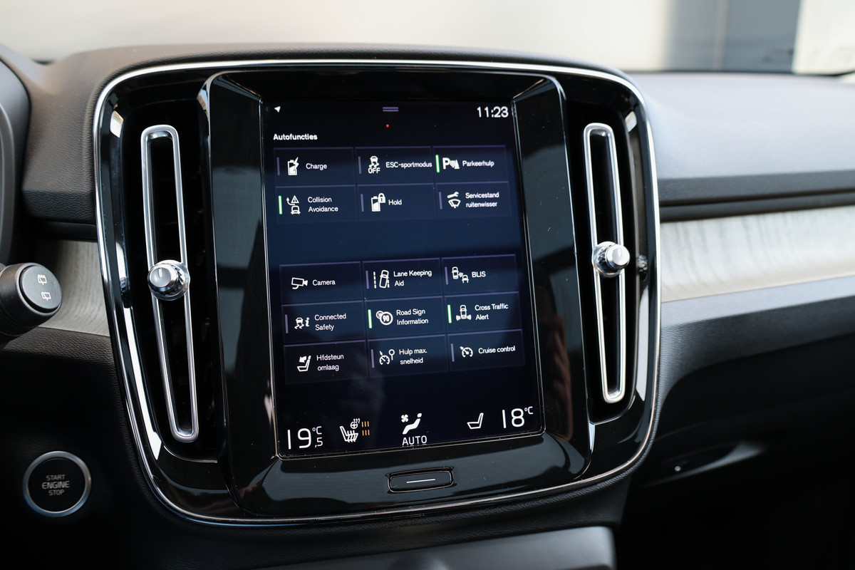 Snelheid, omgevingsinfo, navigatie en communicatie... Het digitale dashboard geeft alles realtime weer. Met de 360 graden camera, verzorgd door vier camera's, wordt rijden in drukke steden of het navigeren in nauwe ruimtes een koud kunstje. Met adaptive cruise control houdt de auto zelfstandig afstand tot uw voorligger. Een veiligheidsverhogende optie waarmee u comfortabel onderweg bent. Filerijden? Doodvermoeiend. Daarom helpt de file assistent zo nodig een handje. Door automatisch afstand te houden, en te stoppen als uw voorligger stilstaat. Deze Volvo XC40 is voorzien van een elektrisch inklapbare trekhaak voor als u met een caravan of aanhanger op pad wilt. Deze auto is voorzien van dashboard met spraakbediening, connected drive services, premium audiosysteem, navigatiesysteem met harde schijf, WIFI-hotspot en achteropkomend verkeer waarschuwing.