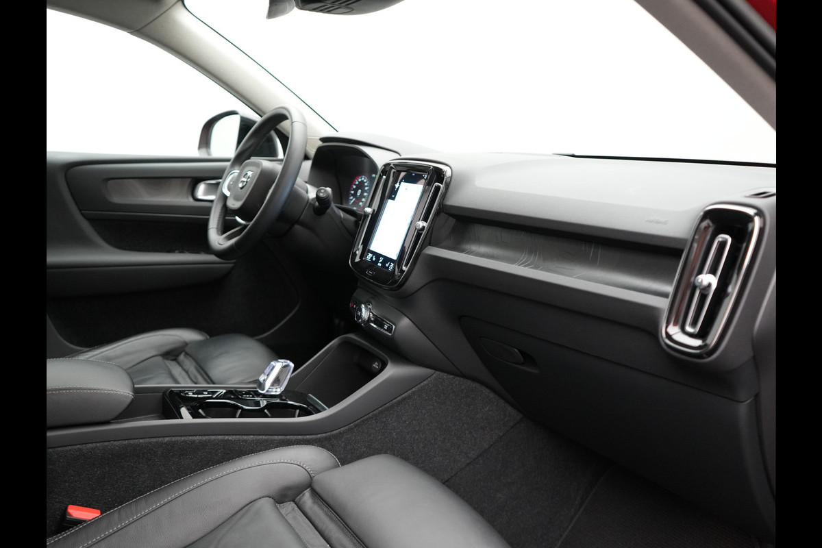 Volvo staat voor veiligheid, dat weten we allemaal. Maar dit Zweedse icoon is nog zoveel meer. Innovatieve technologie en verrassende prestaties in één auto. 'Volvo for life'! Rijden met deze Volvo XC40 is energiezuinig, want de hybride motor combineert brandstof met elektriciteit. Minder vaak langs de pomp, dus dat scheelt! De verwarmbare voorstoelen zijn een weldaad voor rug en schouders. Onderweg zorgen de comfortstoelen voor een ontspannen rit. Dat noemen ze nou een ruimtelijk effect: het elektrisch bediende glazen panoramadak. Een handige voorziening op deze auto is de elektrische achterklep die u op afstand kunt openen. In deze auto profiteert u onder andere ook van: 19 inch lichtmetalen velgen, LED koplampen, in delen neerklapbare achterbank, LED-achterlichten, verstelbare lendensteunen en snelheidsafhankelijke stuurbekrachtiging.