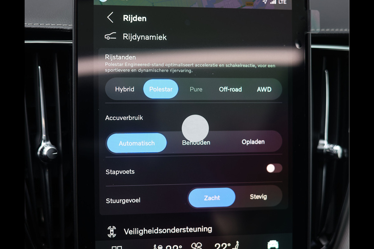 De lak in Aurora Silver metallic vormt een sterke combinatie met de hoogglans zwarte accenten en geeft de auto een uitgesproken sportieve uitstraling. Het betreft hier bovendien de Polestar Engineered uitvoering, herkenbaar aan de 22 inch velgen, de goudkleurige remklauwen met Polestar Engineered opschrift en, voor wie oog heeft voor detail, de ventieldopjes die subtiel in dezelfde kleur zijn uitgevoerd.